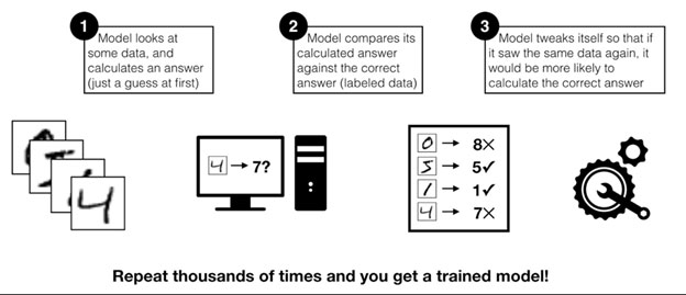 Active learning is a special type of deep learning / machine learning algorithm that leverages human subject matter experts (or some other information source such as Wikipedia) to prioritize labeling the model input data. Machine learning models are basically guess-and-check machines — they look at some data, calculate a guess, check their answer, adjust a little bit, and try again with some new data [1] (see Figure 3).