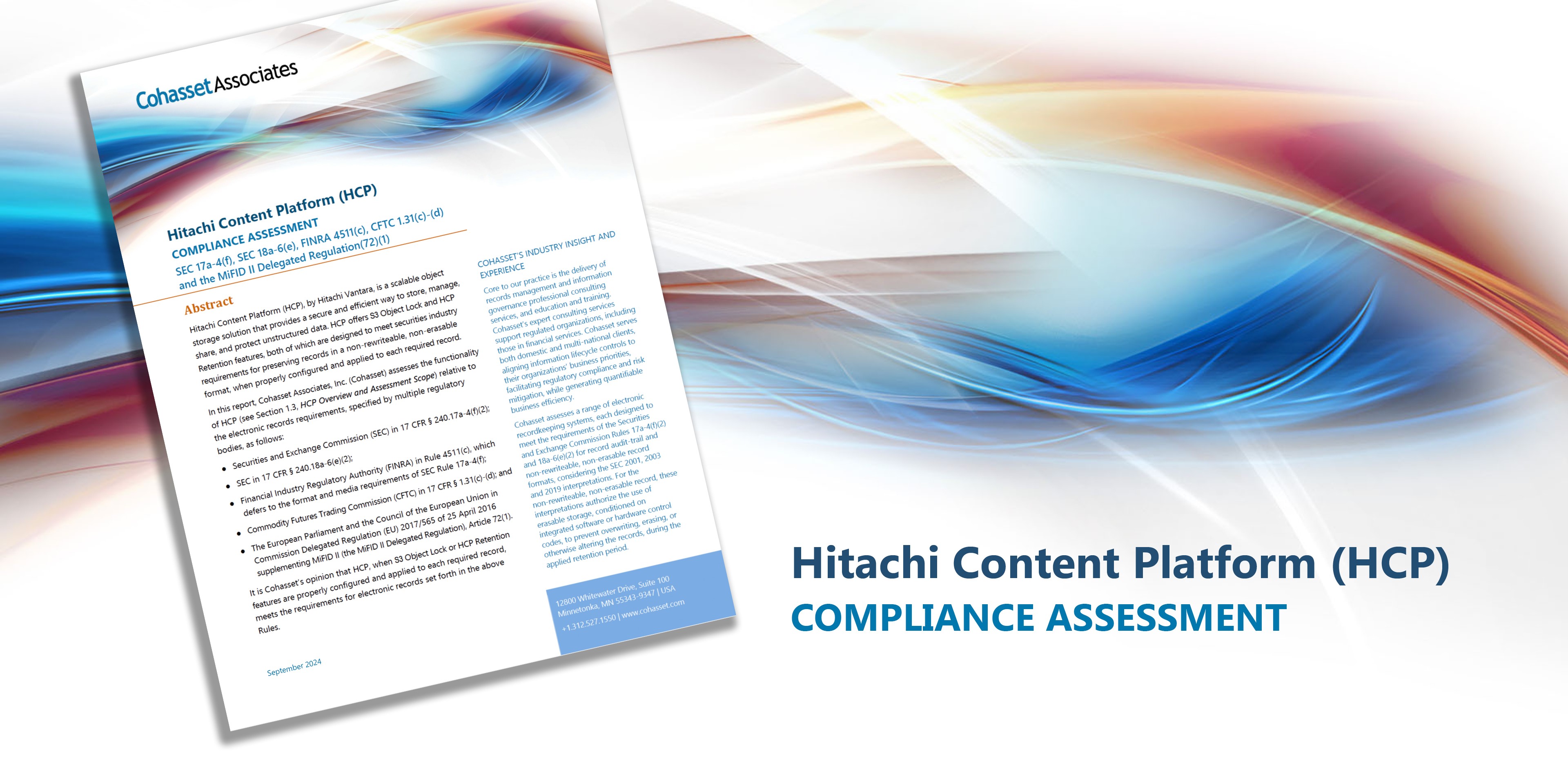 - Cohasset Associates evaluated HCP, which maintains data in immutable records. Essentially, it acts like a digital vault, ensuring the integrity and trustworthiness of financial records. Once data is stored, it’s locked, preventing unauthorized edits.