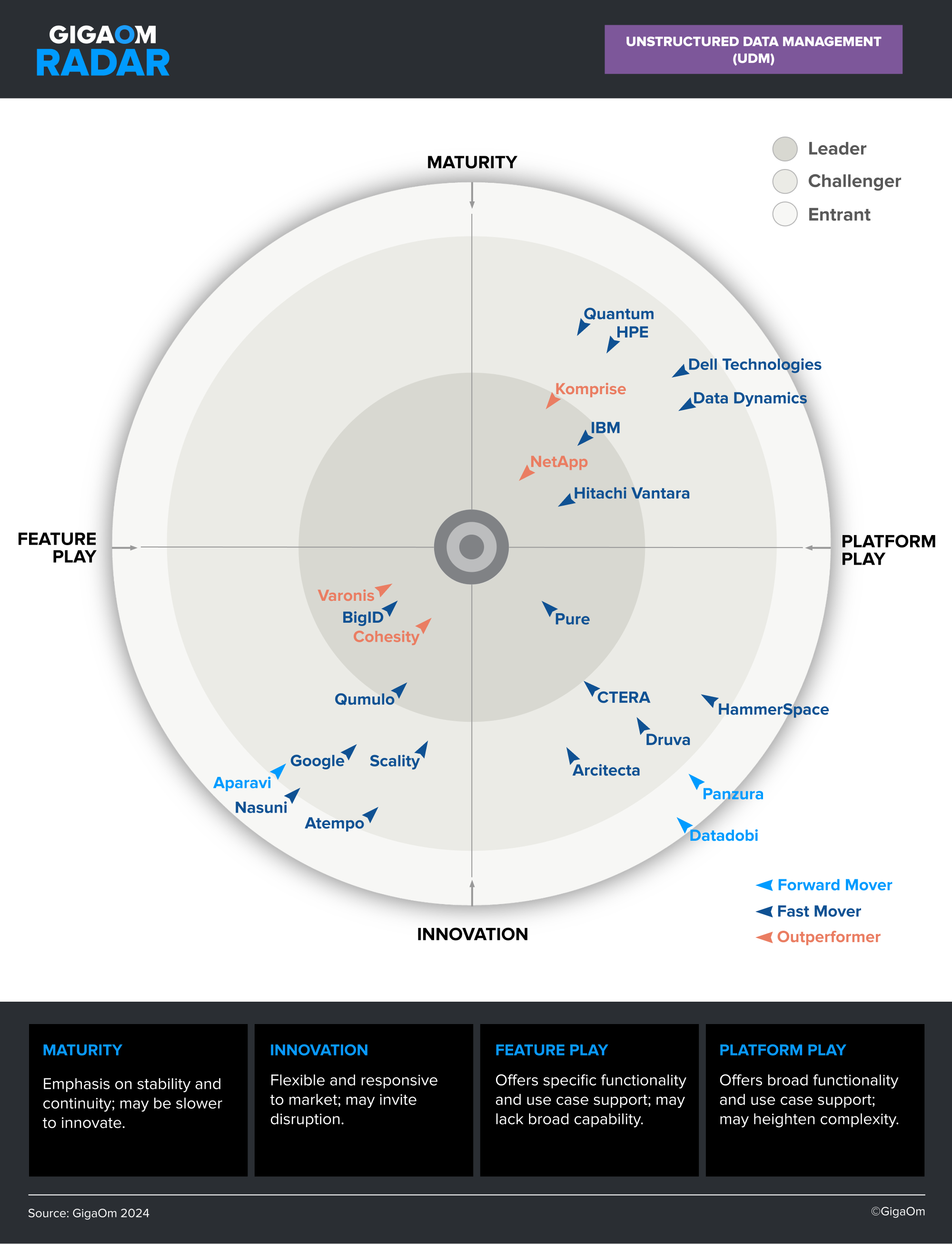 “To earn recognition as a GigaOm radar leader, top-notch performance, scalability, and security are essential,” said Whit Walters, GigaOm analyst. “Hitachi Vantara’s UDM solutions assist organizations in confidently managing unstructured data. With a focus on intelligent data management and adaptable cloud use, Hitachi Vantara enables businesses to thrive amidst data challenges. This reflects both the quality of their solutions and their understanding of modern data needs.”