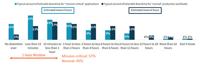 Businesses suffer when systems are down and data is unavailable. In a survey conducted by analyst firm ESG1, 57% of organizations said they couldn’t tolerate more than an hour of downtime. And 15% say they cannot tolerate any downtime at all.