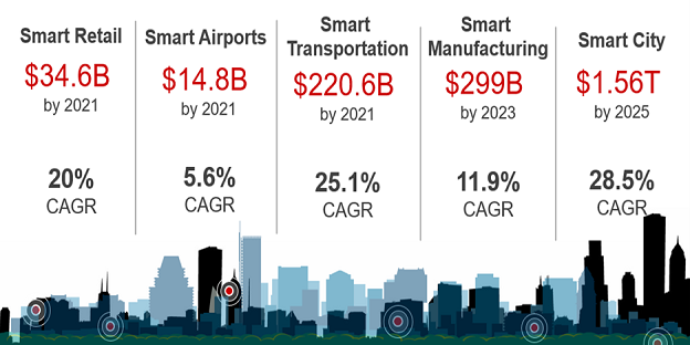 The market for smart cities is substantial and a large portion of that investment will go to make cities safer, more sustainable and efficient. Source: Markets and Markets, Frost & Sullivan