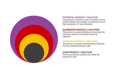 Geoffrey Moore’s seminal book, “Crossing the Chasm”, popularized the idea of the “Whole Product”, building on prior work by Theodore Levitt and Regis McKenna. This is summarized by Figure 2 below. Moore explains that businesses are most effective when they address the “whole product” or solution, going beyond the core solution and even beyond what customers expect, to address the broader scope of customer-oriented value, and in doing so, to maximize the chance of achieving the buying objective.