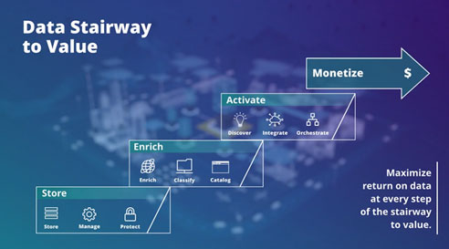 Building on that three-point strategy, Hitachi Vantara has developed the Data Stairway to Value, a framework for success that can help you acquire data value at every step to get the most return on your data.