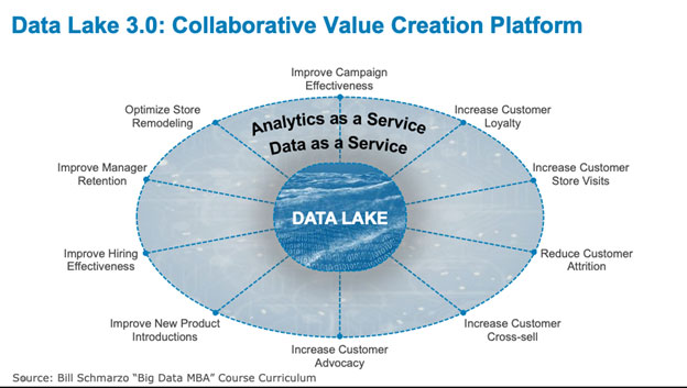 Data Lake.The Data Lake at full maturity can enable the organization to exploit the economic value of data and analytics by centralizing digital asset reusability.The Data Lake becomes a “Collaborative Value Creation Platform” that drives alignment between the organization’s key business and operational initiatives, and the data science team that creates the analytics to optimize those initiatives. Here’s the link to the industry-redefining University of San Francisco research paper “Determining the Economic Value of Data” (see Figure 3).