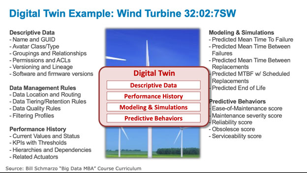 · Asset Models. Asset models capture the “behaviors” – tendencies, inclinations, propensities, associations, and relationships – of both humans (analytic profiles) and mechanical devices (digital twins) at the level of the individual. Analytic profiles provide a structure for capturing an individual human’s (e.g. customer, physician, technician, engineer, teacher, lawyer, athlete) behaviors and tendencies in a way that facilitates the sharing and monetization of these behaviors across multiple business and operational use cases. A digital twin is a digital representation of an industrial asset that enables companies to better understand and predict the performance of things, uncover new revenue opportunities, and optimize the operations of the business. See the blog “Cohort Analysis in the Age of Digital Twins” for more details on Asset models (see Figure 4).